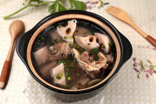 ★ 介紹: 蓮藕與排骨搭配燉湯,味道濃郁,蓮藕軟糯,清淡不油膩,具有超高的營養價值。 ★ 食材及調味料: 豬排骨:250g 蓮藕:500g 西班牙橄欖油:1-2g 食用鹽:5g 白胡椒粉:10g 蔥:5g 姜:10g 水:400g ★ 具體做法: 1、豬排骨洗凈,剁成4厘米長的塊。 2、蓮藕擇洗干凈,刮去皮,切成同排骨同樣大小的塊。 3、高壓鍋中倒入適量開水,放入豬排骨、蓮藕,放入蔥段、姜片、食用鹽、白胡椒粉,蓋上鍋蓋,放在旺火上燒開后,轉用文火燉20分鐘,最后撒上幾滴西班牙橄欖油即可上桌。 總卡路里:91千卡