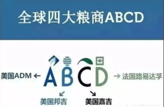 國際四大糧商是指美國ADM、邦吉(Bunge)、嘉吉(Cargill)和法國路易·達孚(LouisDreyfus)四大跨國公司,根據英文名字首字母,人們將其簡為“ABCD”。四大糧商都是擁有百年以上歷史的跨國糧商,目前世界糧食交易量的80%都壟斷性地控制在這四大糧商手中,“只有他們可以定價。”