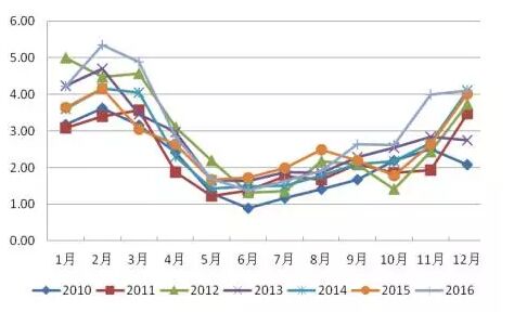 2016年,因種植戶積極性提高以及溫室大棚補貼政策的推行,番茄種植面積小幅增加,產量穩中有升,預計總產量約5686萬噸,同比增1.6%;消費量持續增加,水果番茄、番茄加工品的消費比重明顯提升,消費結構更加趨于合理化;在國際貿易方面,番茄出口量增額減,加工制品量額均減;全年批發均價先降后升,大體呈現“U”型分布。 番茄是我國栽培最為普遍的果菜之一。2016年,預計全國番茄種植面積約1648萬畝,同比增2.7%,其持續增加主要有以下兩個方面的原因:10112;是農戶及基地種植積極性明顯提高,自2015年7月份開始,番茄市場價格漲勢堅挺,農戶每畝均收益達到1萬元以上,高收益推動種植面積的增加;10113;溫室大棚補貼政策的推行,在一定程度上促進北方主產區設施種植面積的增加。 2、消費需求略有擴大,消費結構趨于合理 番茄深受城鄉居民的喜愛,近年來,人們充分認識到番茄的營養價值,消費量呈現逐年遞增的趨勢。番茄富含各種營養成分,被稱為神奇的菜中之果,其中的“番茄素”有抑制細菌的作用,蘋果酸、檸檬酸和糖類,有助消化的功能。櫻桃番茄,別稱圣女果,更是被人們當作日常水果食用。番茄不易儲藏,幾乎沒有庫存。番茄主要用于鮮食,可生食、熟食,成為人們餐桌上的常見菜肴。加工需求日漸旺盛,番茄醬、番茄汁、番茄沙司等番茄加工品也越來越多地被消費者所接受,在很大程度上拉動了國內消費需求。預計2016年,我國番茄消費總量增至4174萬噸,同比增2.4%。 3、番茄出口穩中有降,加工出口明顯下降 番茄是我國最重要的出口優勢農產品之一,其中番茄醬年均出口量約占世界貿易量的1/3。出口國家主要集中在俄羅斯、越南、哈薩克斯坦、蒙古等周邊國家。近年來,我國番茄制品出口出現小幅縮減趨勢,主要原因有: 10004;一是番茄生產加工成本上升,“地板”“天花板”雙重齊下; 2016年1-11月份累計番茄出口量105萬噸,同比增0.2%,出口金額8億美元,同比減12.7%;其中,番茄制品出口量86萬噸,同比減1.0%,出口金額7億美元,同比減17.8%。 據農業部監測數據顯示,2016年番茄全年批發均價每公斤3.11元,同比漲16.5%。整體來看,番茄價格季節性變化明顯。 前三個月番茄批發均價高達每公斤4.82元,主要原因是延續了2015年設施番茄的有限供應;受高價位影響,露地番茄種植面積快速擴張,4月份以后隨著露地番茄大量上市,價格持續下跌,直至9月份露地番茄退市、設施番茄上市的換擋期,價格飚至每公斤2.64元,環比漲72.2%。番茄價格迎來了新一輪上漲,主要原因有: 10004;一是番茄處于夏秋品種交接之際,露地番茄生產進入尾聲,北方溫室番茄處于上市前期,市場供應量明顯減少; 至12月份,價格繼續上漲至每公斤4.10元。 ▲圖1 2010-2016年番茄批發價格走勢(元/公斤) 2017年,在2016年番茄價格同比波動的影響下,預計露地種植面積會呈現縮減趨勢,而大棚種植面積有望增加;消費量增長的態勢將會延續,消費者對番茄品種、質量、數量的期盼更為多元化;加工制品出口或將進一步繼續下滑;番茄整體價格水平呈現穩中略降的趨勢,波動幅度或將減緩。 農產品種植面積往往是由上一個生產周期的價格高低決定的。受2016年番茄價格同比波動的影響,預計2017年番茄露地種植面積會呈現縮減趨勢,而大棚種植面積有望增加。總的來看,全年番茄種植面積約1627萬畝,同比減1.3%;若無重大自然災害,單產水平有望恢復至每畝3500公斤,總產量達到5695萬噸、同比增0.2%。主要原因是:2016年5、6月份河南、內蒙、遼寧、吉林等地,番茄出現“賣難”現象,直接影響了農戶第二年露地番茄的生產積極性;同時,番茄種植比較優勢降低,生產成本上升較為明顯,如勞動力成本增加20.0%,農戶可能傾向于種植草莓等其他經濟作物。 2、消費需求穩步提升,品種呈現多元化 近年來,我國生鮮番茄及其制品的消費穩步提升,預計2017年消費量增長的態勢將會延續,番茄消費量總量約為4208萬噸,同比增0.8%。隨著人們生活水平的提高,對番茄品種、質量、數量的期盼更為多元化,助推了番茄總需求量的增長。水果番茄成為緊俏商品,日漸受到消費者歡迎;加工番茄與鮮食番茄品系不斷細分,區分度更加明顯;;櫻桃番茄約占番茄上市量的30.0%-40.0%,而且比重或將增加。 3、加工制品出口或將進一步繼續下滑 2009年以來,我國番茄加工制品出口量、出口額總體呈現下降趨勢,沒有表現出好轉跡象。預計2017年,番茄出口總量約120萬噸,同比增0.8%,但加工出口形勢仍會低迷徘徊,加工制品出口或將進一步繼續下滑。據“中國蔬菜流通協會番茄專業委員會成立大會暨2016全國番茄產銷對接會”報告顯示,近年來,一些國家通過提高技術性貿易壁壘限制中國番茄產品的進入,出臺了一系列技術標準和限制政策,對番茄出口產品的質量要求更為嚴格,在一定程度上制約了我國番茄產品及其加工制品的出口。 4、價格水平穩中略降,波動幅度或將小于上年同期 2017年,番茄整體價格水平呈現穩中略降的趨勢,波動幅度或將減緩,每公斤約3.0元,同比減3.5%。分階段來看, 三、生產經營建議 市場價格是決定種植意向的風向標,生產者應密切關注市場行情,適時調整番茄種植面積,根據消費者偏好,調整優化種植品種結構,同時提升田間管理技術水平,加強信息技術在番茄種植中的應用,以實現保產增效,切實保障自身利益。 二是優化品種結構,適應消費市場需求。番茄品種多樣,反映了