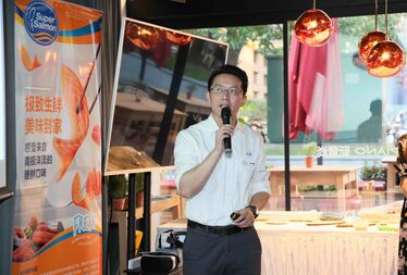 愛閣食品銷售經理王舒先生講解愛格食品Super Salmon三文魚