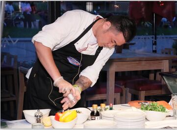 主廚Leo為來賓現(xiàn)場展示酸橘汁腌三文魚的制作過程