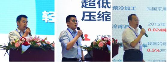 從左至右,依次為青島海爾冷柜制冷模塊長成俊亮、科慕技術專家許楊峰 此外,三花產品應用經理曹丹輝先生、海信商用冷鏈吳鐵暉博士分別發表了《新型冷鏈制冷解決方案的路徑分析》、《輕型商用制冷解決方案研究與發展》等精彩演講。