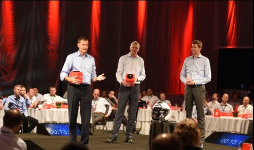 ![]() 從左到右:方行健先生,克里斯滕森(Jesper V. Christensen)先生(首席財務(wù)官),克里安森先生在5月的全球管理層大會上