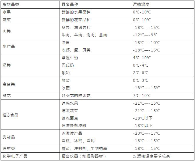 目前,冷鏈物流的適用商品一般分為三類:一是初級農(nóng)產(chǎn)品,包括蔬菜、水果、肉、禽、蛋、水產(chǎn)品、花卉等;二是加工后的食品,如速凍食品、肉、水產(chǎn)、熟食、冰激凌和奶制品等;三是特殊商品,如藥品和疫苗。和傳統(tǒng)物流相比,冷鏈物流在每一個環(huán)節(jié)上對技術(shù)的要求更高,資金投入也更大,已是國家重點扶持的領(lǐng)域。冷鏈物流的核心不完全是“冷”,而是“恒溫”,因為不同的產(chǎn)品需要不同的保存溫度(見表2)。