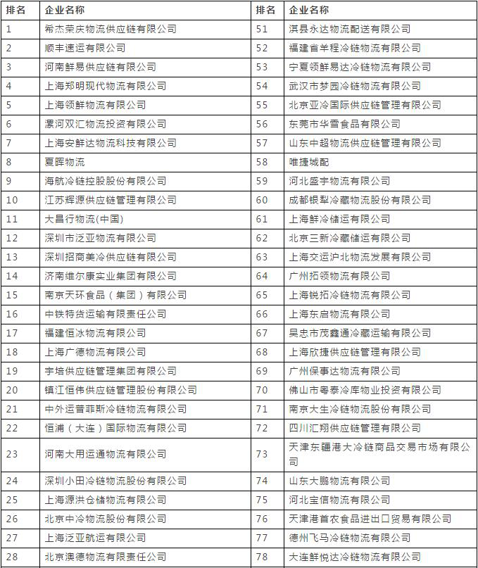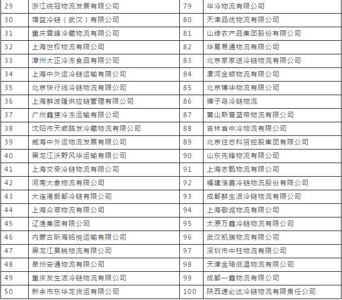 表7 2017中國冷鏈物流企業(yè)百強名單