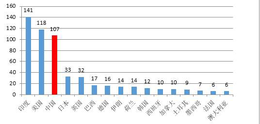 圖9 2016年各國冷庫保有量對比(單位:百萬立方米)