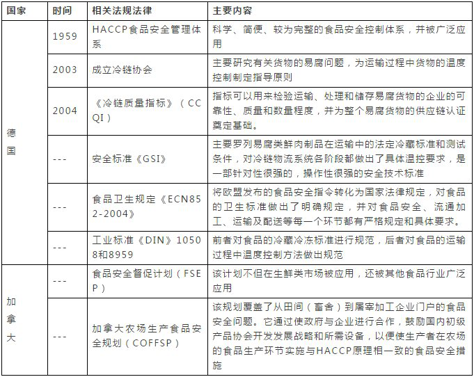 表7 部分發(fā)達(dá)國家冷鏈物流相關(guān)政策