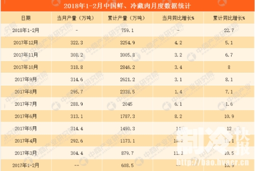 制冷設備的冷卻方式有直接冷卻和間接冷卻兩種。直接冷卻是將制冷機的蒸發器裝設在制冷裝置的箱體或建筑物內,利用制冷劑的蒸發直接冷卻其中的空氣,靠冷空氣冷卻需要冷卻的物體。這種冷卻方式的優點是冷卻速度快,傳熱溫差小,系統比較簡單,因而得到普遍應用。 如今市場上制冷設備的應用更是普遍,隨著人們生活水平的不斷提高,肉類產品漸漸成為人們飲食生活中的必需品,而肉類消費市場多以生鮮肉、冷凍肉為主導。再加上冷藏保鮮設備及冷鏈物流設備的發展,以及消費者健康營養意識的不斷提升,對冷鮮肉的認識也越來越深入,冷鮮肉市場日漸擴大起來。2017年全年我國鮮冷藏肉產量共計3254.9萬噸,與上年同期相比增長5.1%。進入到2018年,全國鮮冷藏肉產量有如何呢? 據中研究院大數據庫顯示:2018年1-2月中國鮮、冷藏肉產量為759.1萬噸,同比增長22.7%。