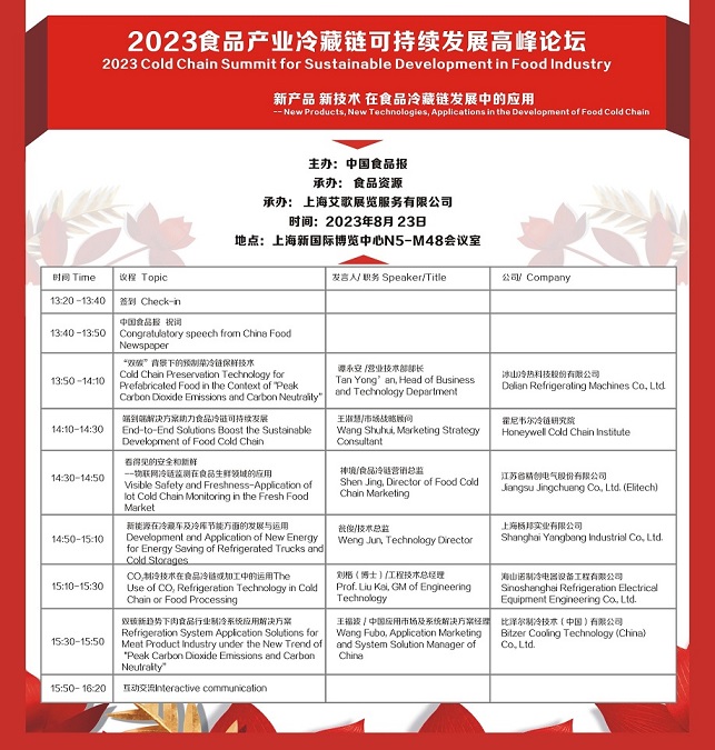 2023食品產業冷藏鏈可持續發展高峰論壇8月23日舉辦