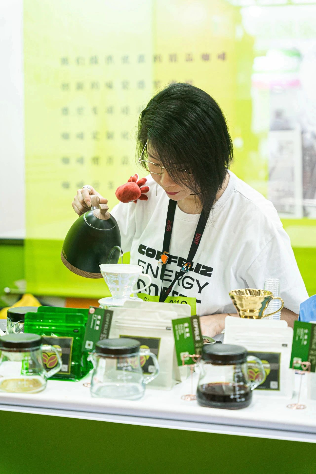 在展會現場的CTI趣味沖煮賽,觀眾們得以欣賞咖啡師行云流水的沖煮手法,看著清澈開水鉆過咖啡變成琥珀色的咖啡湯液,在咖啡飄香的包圍下,接收咖啡帶來「忙里偷閑」的治愈。 ![]() · 冠軍 · 唐慧穎