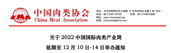 2022中國國際肉類產業周系列活動延期至2022年12月10-14日