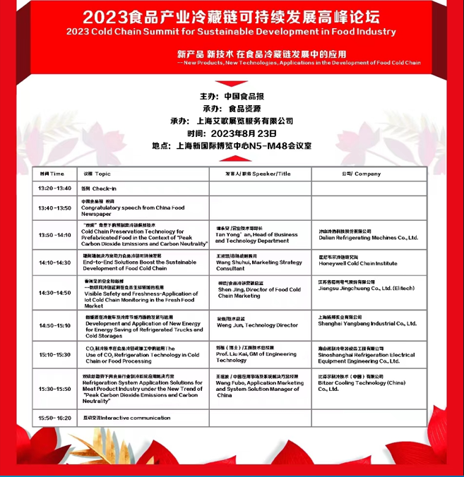 2023食品產(chǎn)業(yè)冷藏鏈可持續(xù)發(fā)展高峰論壇 2023 Cold Chain Summit for Sustainable Development in Food Industry