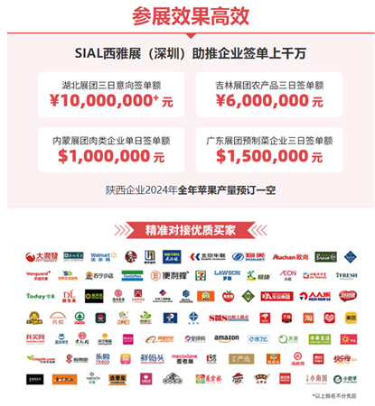 本屆展會收獲了來自全球各地眾多展商的信任,2024年SIAL 西雅展(深圳)將迎來更多國際知名采購商,如KK mart、99 speedy以及美國KEHE、越南Lotus集團等大買家。目前,為了給展商提供更加精準、高效、國際化的商貿服務,2024年SIAL 西雅展(深圳)正全面邀請華南地區及東南亞等全球優質買家資源,覆蓋商超、便利店、零售、餐飲、電商、團餐、禮品、團購、KA、便利店、批發、經銷、茶飲、進出口國際買家等多個板塊。
