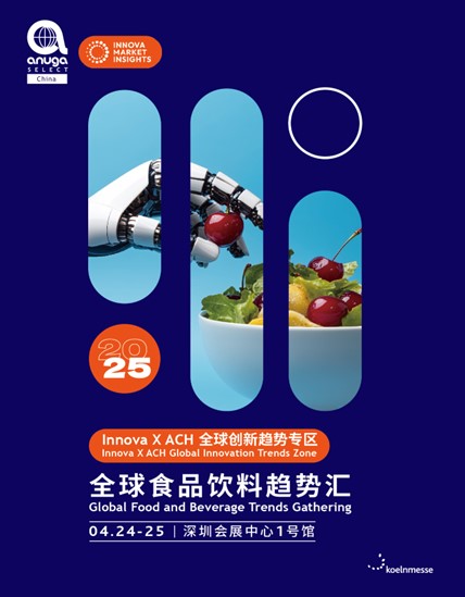 Anuga Select China 2025將與食品飲料趨勢研究領域的權威機構Innova市場洞察合作,共同推出Innova X ACH全球創新趨勢專區——“2025全球食品飲料趨勢匯”。展會同期將開展一系列圍繞“2025全球食品飲料十大趨勢”的活動,如趨勢發布、論壇演講、趨勢產品精選展示以及商貿對接等,為參會者提供解讀趨勢、分享案例和研討合作的絕佳機會,全方位充實展會內涵,助力行業實現更優發展。特別值得一提的是,主辦方將設立“Innova X ACH 2025食飲趨勢創新先鋒獎”,依據Innova市場洞察的權威評選結果,為獲獎展商定制專屬認證,并在展會現場通過場景化展示獲獎產品,全方位提升企業形象與品牌知名度。